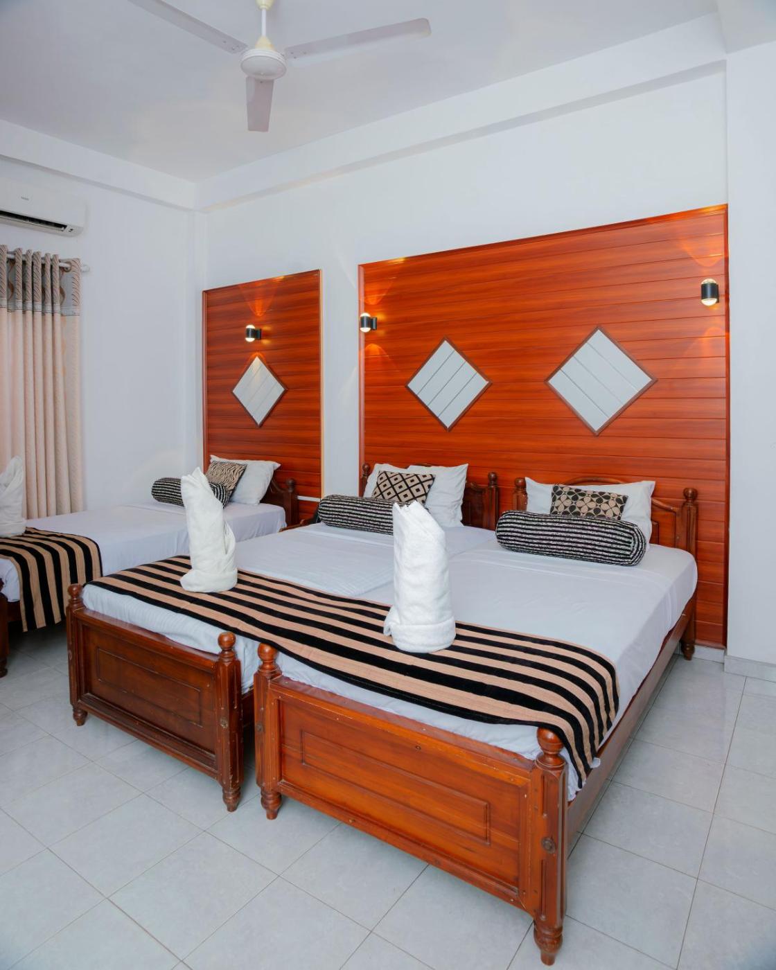 Set in Hambantota, 11 km from Bundala Bird Sanctuary, Hotel Blackstone offers accommodation with a garden, free private parking, a shared lounge and a terrace. Featuring a restaurant, the 1-star hotel has air-conditioned rooms with free WiFi, each with a private bathroom. Guests can make use of a bar.